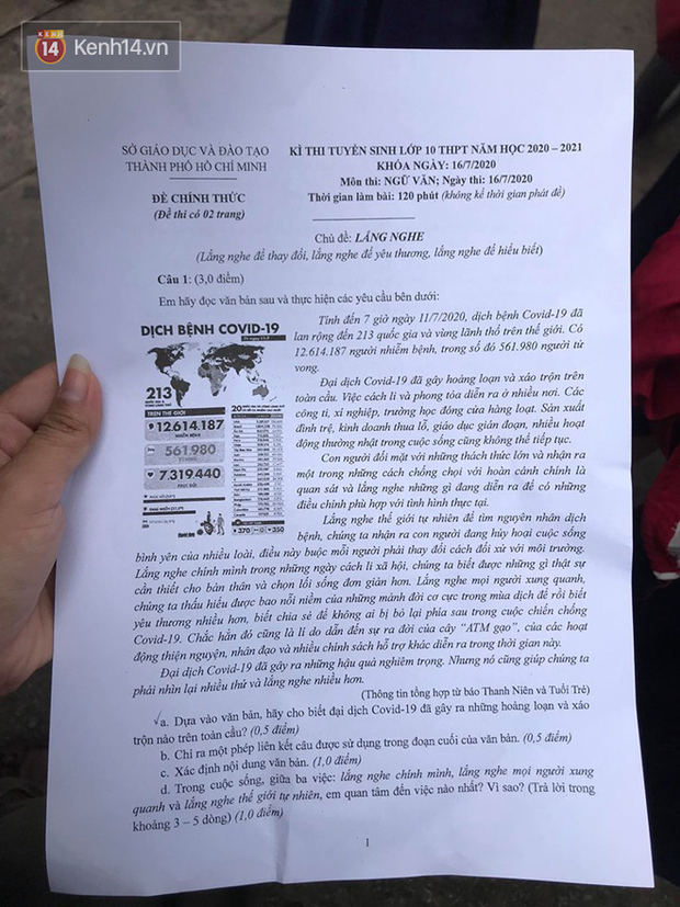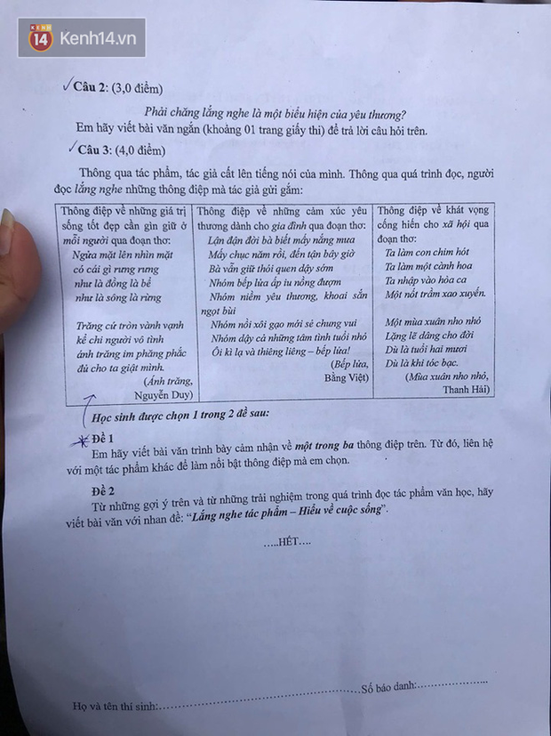 Đáng chú ý là đề thi năm nay lấy chủ đề Lắng nghe với những câu hỏi nghị luận văn học và nghị luận xã hội đều xoay quanh chủ đề này.