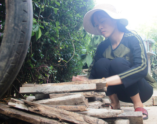 Linh gom củi quanh xóm về cho mẹ dự trữ dùng trong mùa đông.