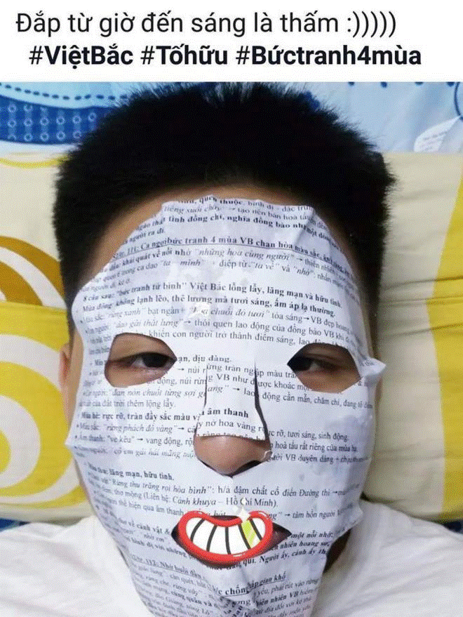 Mới đây, trong group Trường Người Ta, một bạn học sinh đã đăng tải phương pháp ôn thi vô cùng độc đáo của mình. Với phương pháp này nữ sinh vừa có thể chăm sóc da mặt lại vừa tiếp thu được kiến thức.