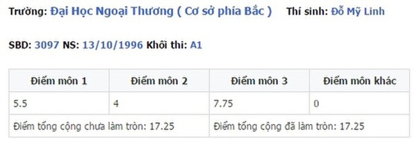 Sau đó, cô nàng đã phúc khảo điểm Văn lên thành 6,75, kéo tổng điểm lên làm tròn 22 điểm - vừa đủ điểm chuẩn đỗ khoa Quản trị Kinh doanh của trường ĐH Ngoại thương.