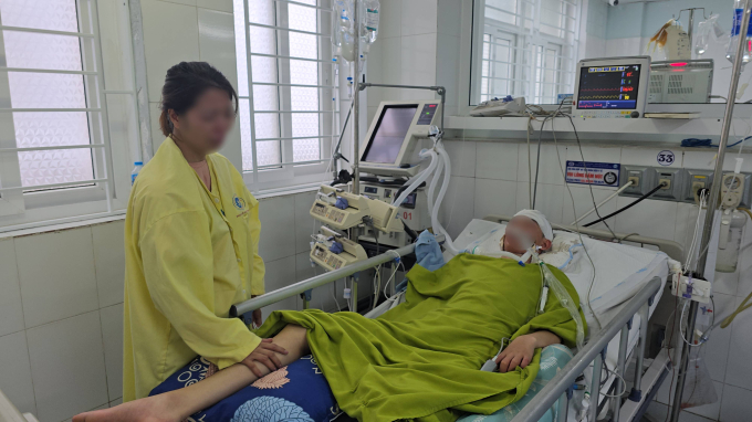 Nạn nhân sau đó được đưa đi cấp cứu tại Bệnh viện Trung ương Quân đội 108 và trải qua 2 lần phẫu thuật. Do cháu Đ. bị tổn thương quá nặng, nên sự sống của cháu gần như không còn, sức khoẻ của nạn nhân được duy trì từng ngày bằng máy thở.