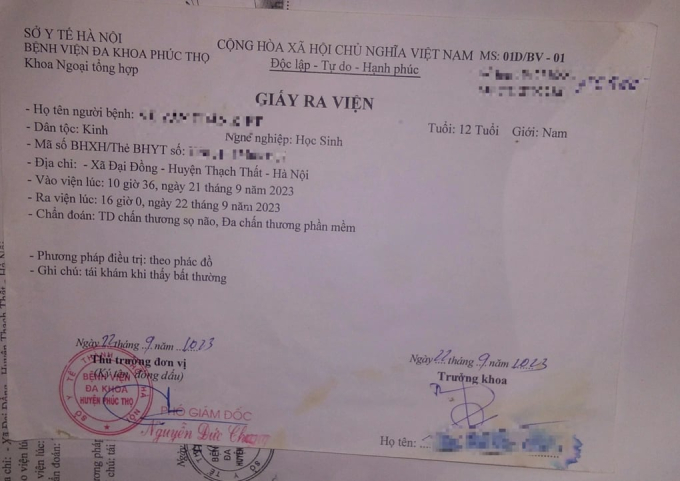 Ngày 21/9, em K. có những biểu hiện sang chấn tâm lý nên gia đình đã đưa đến Bệnh viện Đa khoa huyện Phúc Thọ thăm khám.