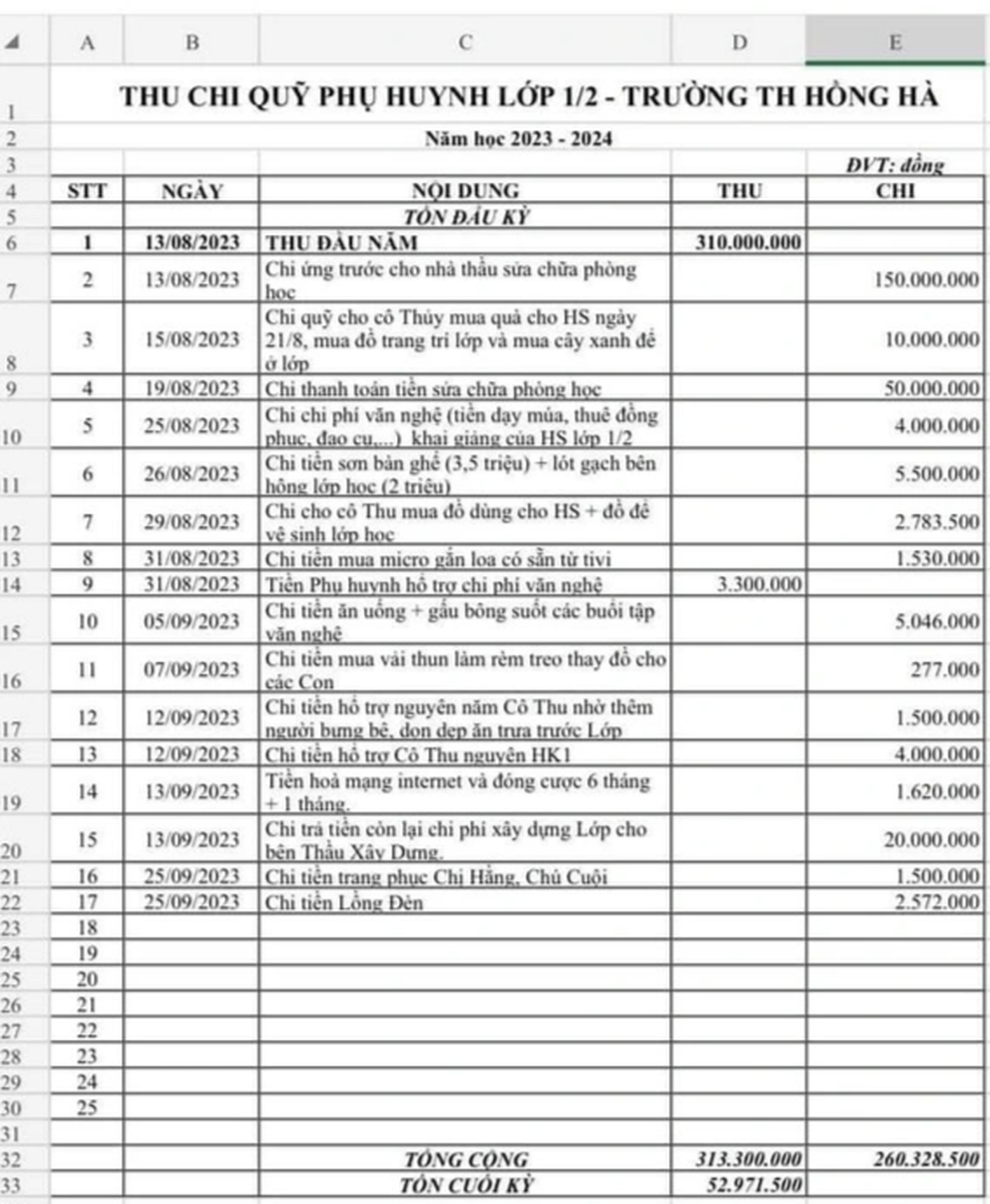 Bản thu chi hàng chục, hàng trăm triệu đồng cho một lớp học đã không còn xa lạ (Ảnh: PHCC).