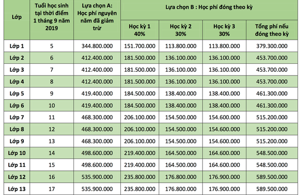 Học phí niên khoá 3 cấp của trường Quốc tế đa cấp Anh - Hà Nội