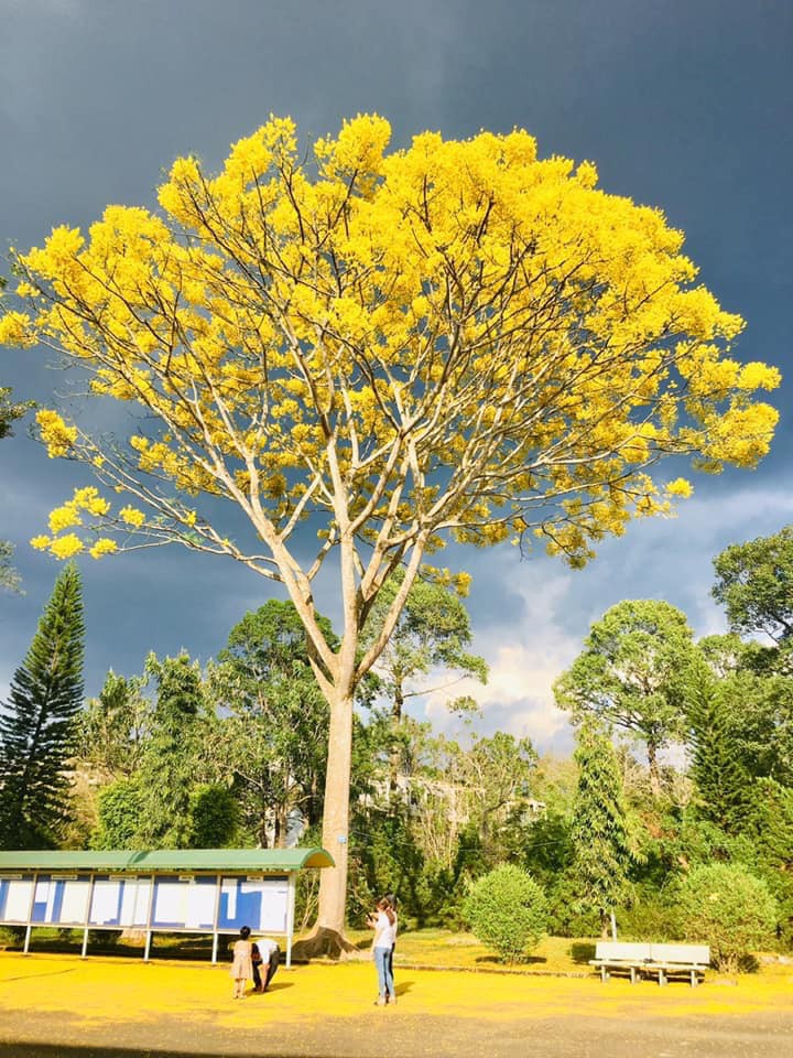 Cây phượng vàng còn có tên khác là Phật Y. Đây là một loài hoa quý hiếm, xuất xứ từ Brazil. Cứ mỗi mùa đông-xuân đến, bầu trời Lâm Đồng lại được nhuộm bởi màu vàng rực rỡ (Ảnh: Nguyễn Ngọc Kiều Trinh)