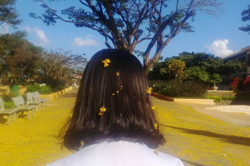 Loài hoa này bung nở vào dịp xuân, khi hoa rụng xuống, cả sân trường như được trải một lớp thảm nhung xa hoa, lộng lẫy (Ảnh: Nguyễn Ngọc Kiều Trinh)