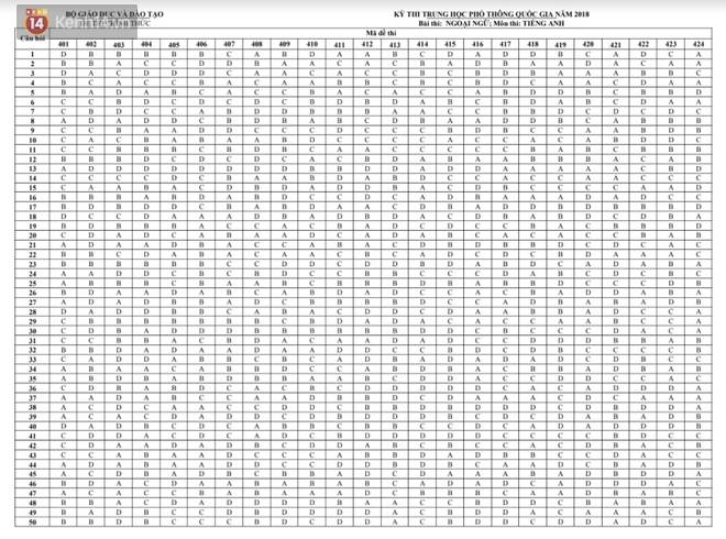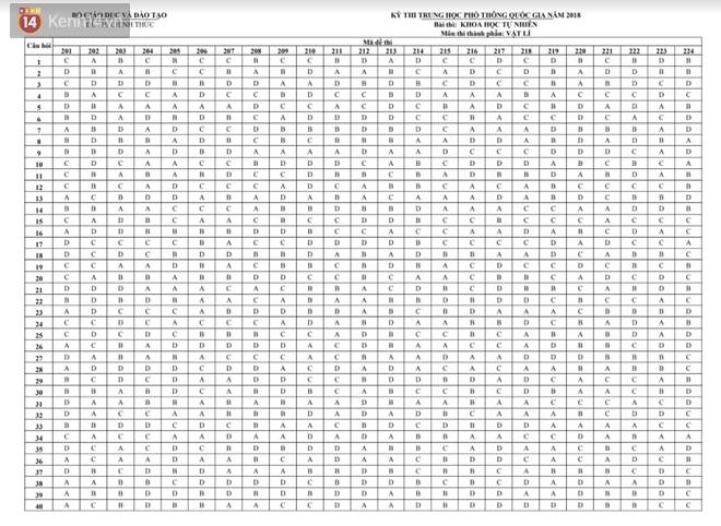 Chiều 27/6, sau khi kết thúc kỳ thi THPT quốc gia 2018, Bộ GD&ĐT chính thức công bố đáp án 9 môn thi.