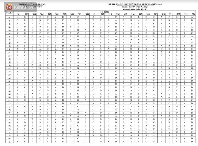 ĐÁP ÁN MÔN ĐỊA LÝ
