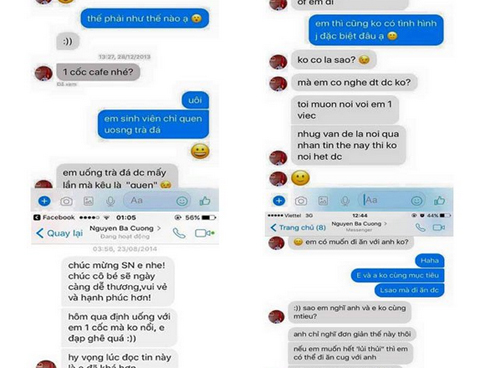 Một số đoạn tin nhắn được cho là giữa giảng viên Cường và các nữ sinh được chia sẻ trên trang SOL - VNU Confessions