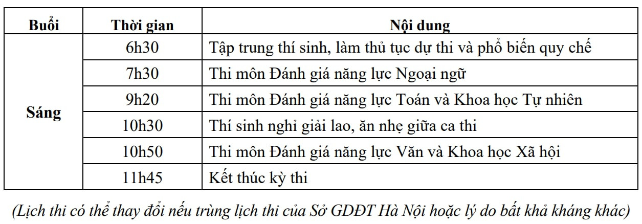 Lịch thi vào lớp 10 trường THPT Chuyên Khoa học Xã hội và Nhân văn vào một buổi duy nhất là sáng Chủ Nhật, ngày 2/6/2024 (trước đó trường từng dự kiến tổ chức sáng thứ Bảy, ngày 1/6, nhưng sau đã thông báo điều chỉnh). Cụ thể như sau: