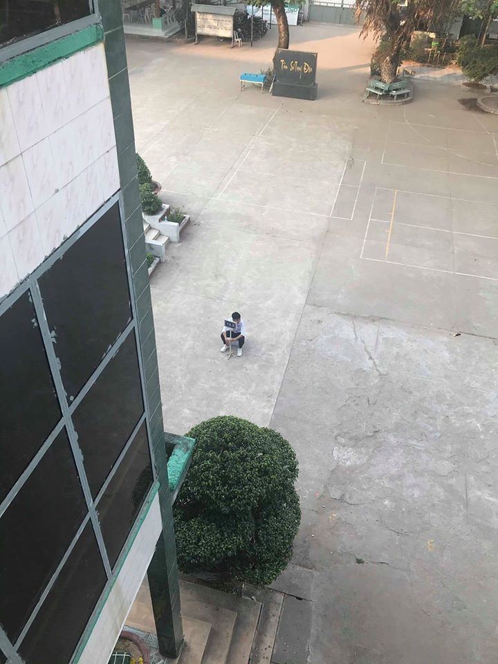 Chia sẻ trên một diễn đàn, hình ảnh một nam sinh cầm bảng tên ngồi giữa sân trường kèm theo dòng chú thích "Khi bạn khao khát, đam mê chào cờ ". Cũng là buổi lễ chào cờ nhưng thay vì học sinh đứng kín sân trường như mọi lần thì bây giờ chỉ có mỗi một mình nam sinh này ngồi lặng lẽ với chiếc bảng tên lớp.