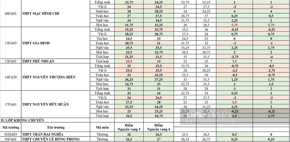 Ở khối lớp không chuyên thuộc 2 Trường THPT chuyên Lê Hồng Phong, THPT chuyên Trần Đại Nghĩa điểm chuẩn tăng nhẹ từ 0,25 đến 0,5 điểm.