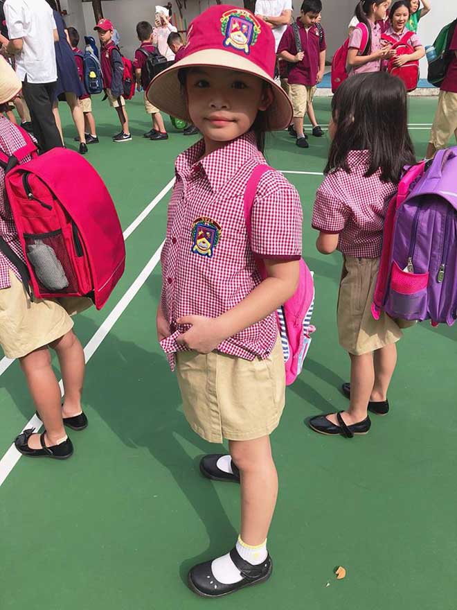 Nhiều gia đình sao Việt khác cũng chia sẻ ảnh đưa con tới trường và niềm vui của các bé khi được đến lớp sau kỳ nghỉ hè.