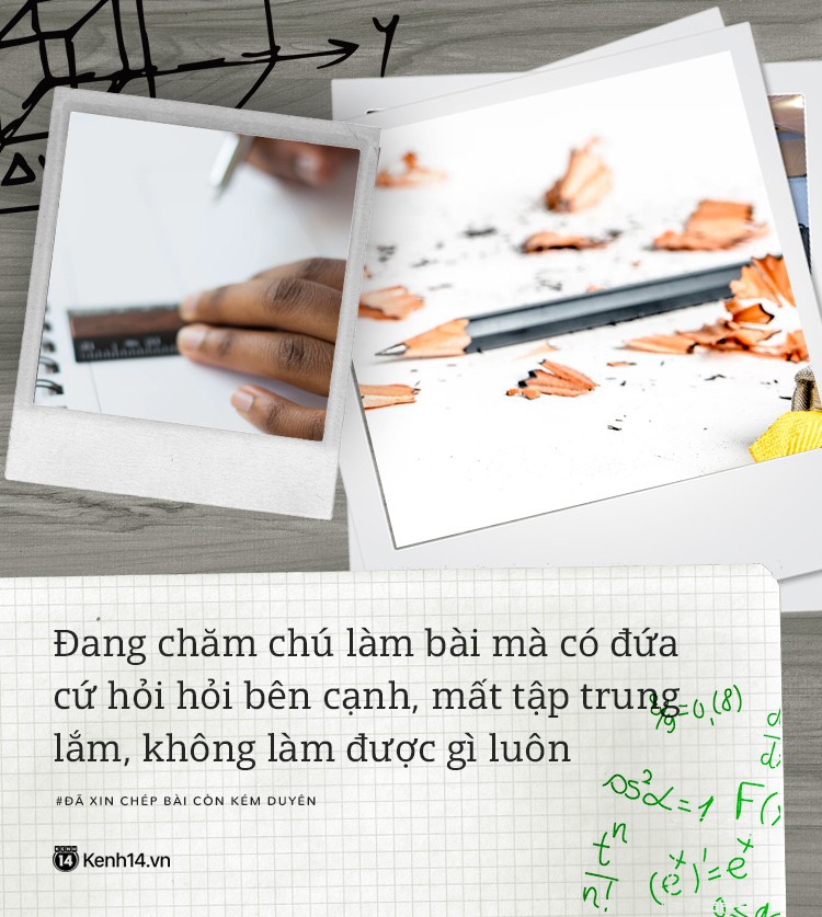 Có đứa xin chép bài còn vặn vặn vẹo vẹo vẹo, hỏi lên hỏi xuống làm mất tập trung, mất thời gian. Nào là tại sao làm thế này, tại sao làm thế kia.