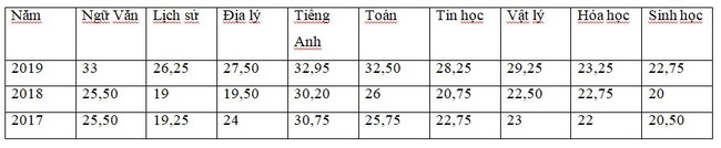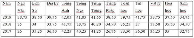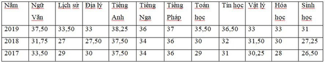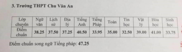 Điểm chuẩn của THPT Chu Văn An 4 năm gần đây: