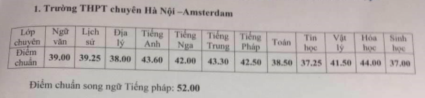 Điểm chuẩn của THPT chuyên Hà Nội - Amsterdam 4 năm gần đây: