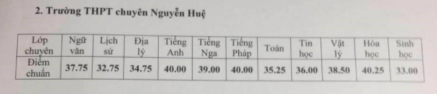 Điểm chuẩn của THPT chuyên Nguyễn Huệ 4 năm gần đây: