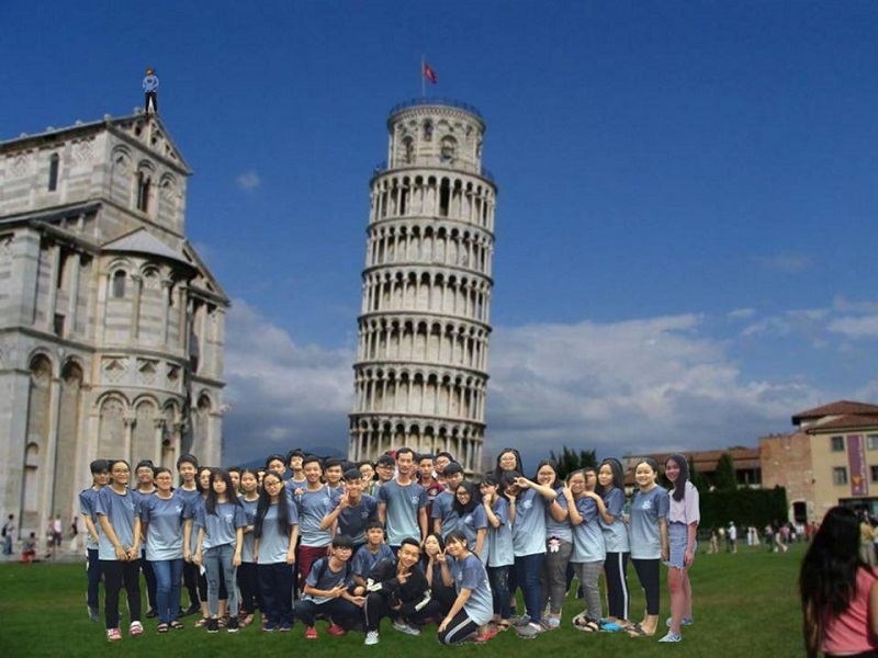 Từ tháp nghiêng Pisa ở Ý, đồng hồ Big Bang ở Anh, hay Kim Tự Tháp Ai Cập, lớp này có vẻ khá đầu tư cho khoản du lịch. Đặc biệt, một thành viên trong lớp, có lẽ thường xuyên vắng mặt trong những lần hội họp chăng mà đã được 'ưu ái' cho đứng ở những vị trí quan trọng trong các bức ảnh. Khi thì đứng trên đỉnh nóc các tòa nhà, cung điện, lúc lại đứng một bên mái nhà, nhưng đến tấm cuối, cậu bạn lại chễm chệ chiếm hết spotlight thế này đây.