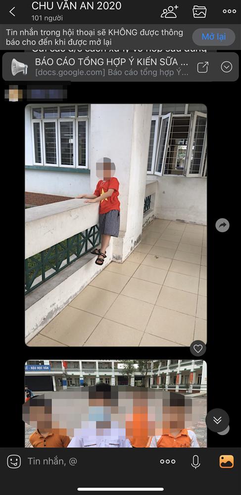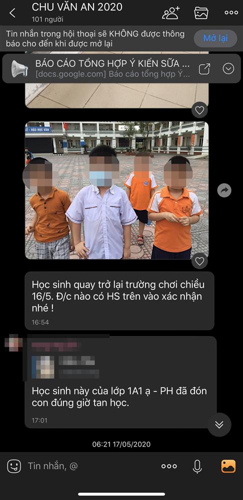 Kèm theo nội dung thư là hình ảnh chụp màn hình chat trong nhóm Chu Văn An 2020. Trong nội dung trao đổi có hình ảnh chụp học sinh và lời nhắc nhở không cho học sinh quay trở lại trường: "Học sinh quay trở lại trường chơi chiều 16/5. Đồng chí nào có học sinh trên vào xác nhận nhé".