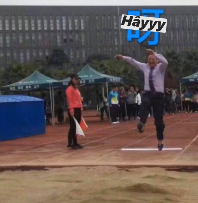 Có vẻ kỹ thuật nhảy xa của thầy không tệ. Cuối cùng thầy hiệu trưởng đã nhảy lên rồi này!