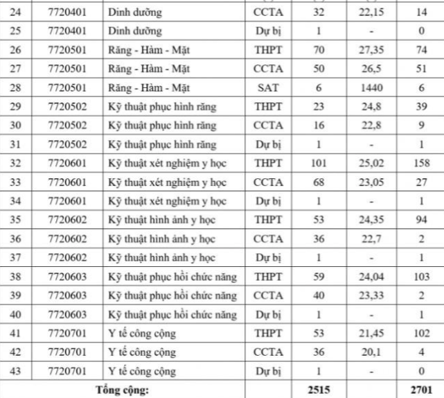 Điểm chuẩn các trường Y- Dược trong cả nước như sau: