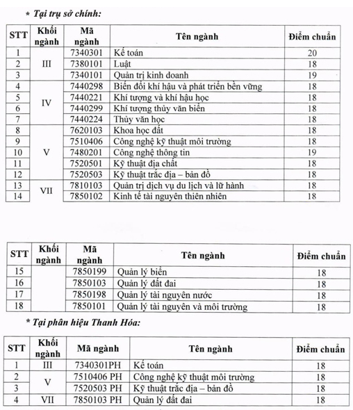 Mức điểm chuẩn của Đại học Tài nguyên và Môi trường Hà Nội dao động từ 18 đến 20 điểm. Ngành có điểm chuẩn cao nhất là Kế toán.