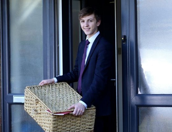 Nam sinh còn dùng giỏ đan để đựng sách vở khi đến trường.