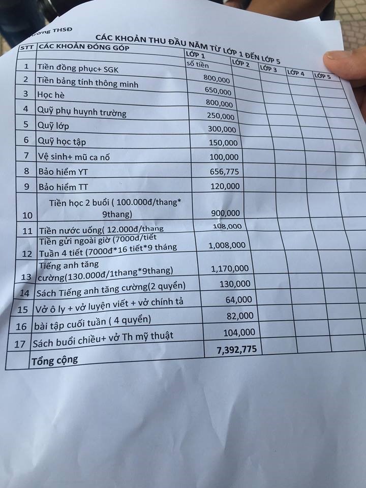 “Trên cơ sở báo cáo của nhà trường, những khoản thu ghi trong bản chụp được chia sẻ trên mạng xã hội là không đúng. Nhà trường có bản dự kiến thu chi để triển khai trước năm học.