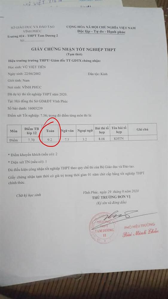 Trong kỳ thi tốt nghiệp THPT Quốc gia vừa diễn ra, cậu bạn này đã đạt số điểm cao chót vót ở môn Toán (9,2 điểm), nam sinh cũng tự tin đăng ký làm bài thi tự nhiên ở môn tổ hợp và cũng đạt thành tích 8,08 cho 3 môn. Kết quả này được xem là vô cùng tốt làm nhiều thí sinh khác mong ước. Nếu biết trước anh chàng từng học yếu môn Toán thì hẳn sự nể phục của mọi người dành cho 10x sẽ còn tăng lên gấp bội.