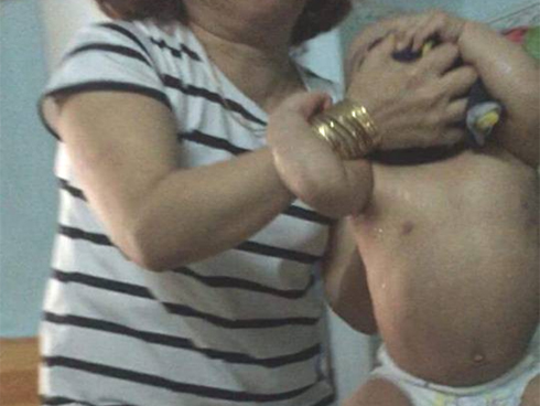 Cháu B.D bị bà Hồng bạo hành trong clip