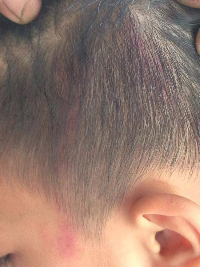 Đầu học sinh V. V. Đ có nhiều vết bầm được cho là bị cô hiệu phó gây ra.