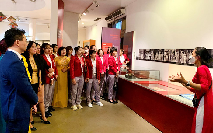 Các đại biểu thăm quan triển lãm “Khát vọng tỏa sáng” tại Bảo tàng Phụ nữ Việt Nam