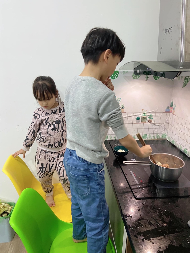 Mới đây, chị Nguyễn Tâm (sống tại Hà Nội) đã chia sẻ câu chuyện vui xen lẫn hài hước khi cho các con vào bếp nấu ăn. Các bé tự bảo nhau làm lần lượt các bước theo thứ tự và thành quả là 3 món: trứng kho thịt, canh rau bắp cải và đậu rán. Trông 2 em bé làm rất tâm huyết, chuyên nghiệp, còn việc của mẹ là ngồi nhàn nhã thưởng trà chờ đợi mà thôi.