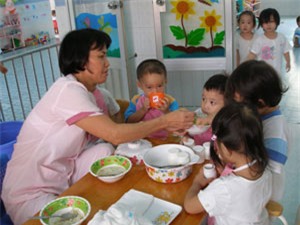 Ngoài việc chăm sóc miếng ăn, giấc ngủ, rửa ráy cho các con mỗi ngày, các cô vẫn phải thực hiện đầy đủ chuyên môn: dạy hát, múa, kể truyện và các trò chơi... chính vì vậy một lớp 2 cô phải quay chong chóng cả ngày. Buổi trưa, đợi các con ngủ cả, cô mới được ăn vội bữa cơm. Hôm nào có cháu khó ngủ, quấy khóc cô phải vừa bế vừa ăn cơm rất vất vả.