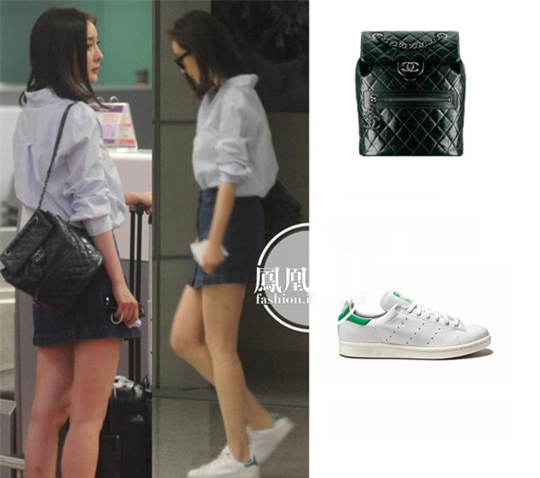 Mẫu ba lô đen tiện dụng của Chanel có giá lên đến 82 triệu đồng được người đẹp phối năng động với sneakers trắng Adidas Stan Smith giá 2 triệu đồng.
