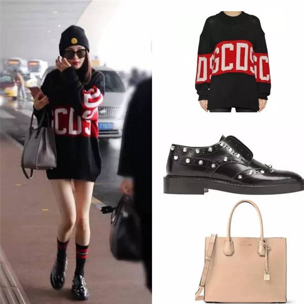 Gucci là một thương hiệu Dương Mịch vô cùng yêu thích. Cô thường xuyên sử dụng phụ kiện của thương hiệu này. Áo kẻ đỏ của Finders Keepers giá 3,2 triệu đồng được nâng tầm khi diện với giày Gucci giá 12,8 triệu đồng, túi xách cùng hãng giá 72, 3 triệu đồng.