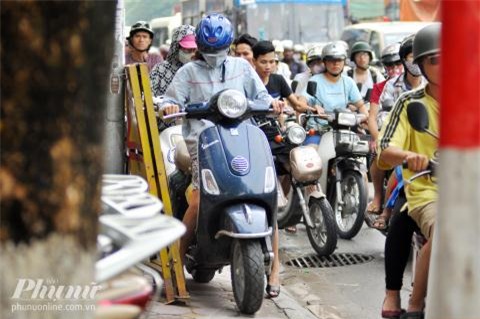 | Coi thường tính mạng của bản thân, nhiều người điều khiển xe máy vẫn bất chấp đi vào đường cấm để thoát khỏi điểm ùn tắc ở đường dưới. |