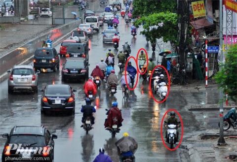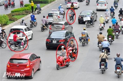 | Phóng viên báo Phụ nữ TP. HCM đã ghi nhận được những hình ảnh vi phạm luật an toàn giao thông của người dân. Trong một khung cảnh nhỏ trên đường Nguyễn Trãi có tới 4 trường hợp vi phạm. (Người và phương tiện vi phạm trong vòng đỏ) |