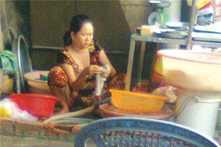 Khi hỏi về sự độc hại của hóa chất tẩy, chủ quầy trả lời như một chuyên gia trong ngành hóa chất: “Pha đúng liều lượng, một nắp với 5 lít nước là an toàn. Hiện nay, nhiều người dùng thứ này, bán đầy ở chợ Kim Biên”. Thế nhưng khi nội tạng giặt xong, vừa bày lên sàn là ngay lập tức ruồi nhặng bâu kín. Dù nhang muỗi được đốt lên để “đuổi” ruồi, nhưng chẳng ăn thua gì.