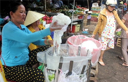 Một chủ quầy chia sẻ: “Loại bột này tẩy rửa cực nhanh, giá đắt hơn các loại nước khác. Khi ngâm nội tạng trong nước có pha bột này, không chỉ làm mất mùi hôi, tanh mà còn làm cho nội tạng săn lại, ăn dòn và dai hơn chẳng khác nào nội tạng tươi”. Khi được hỏi về nguồn gốc của nội tạng, người bán có vẻ dè dặt hơn: “Người ta đem đến bỏ”.