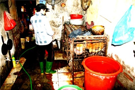 Trong lúc tiến hành kiểm tra khu chợ tạm tại phường Chương Dương (Hoàn Kiếm – Hà Nội), lực lượng kiểm tra liên ngành TP. Hà Nội phát hiện một lò mổ kinh hoàng nằm giữa khu nhà vệ sinh hôi thối. Lò mổ chưa đầy 5 m² quyện đầy máu, phân và lông gia cầm. Dụng cụ giết mổ phủ cáu bẩn. Nước rửa thịt gia cầm được lấy từ nước dội nhà vệ sinh nằm ngay giữa lò.