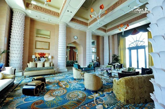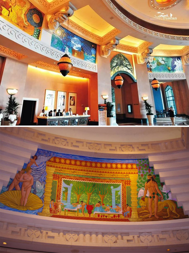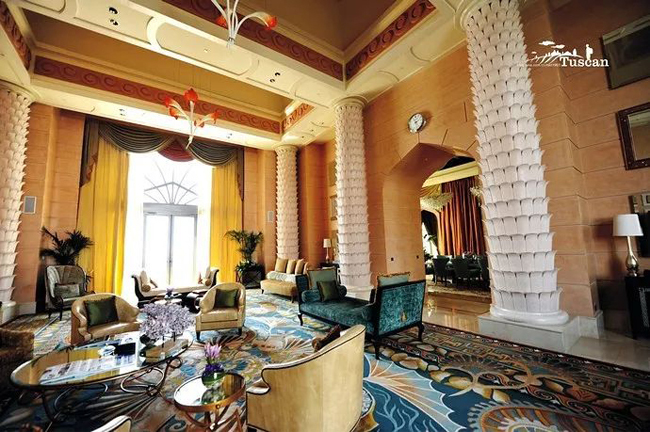 Không gian trong khách sạn được thiết kế theo phong cách Ba Tư cổ và Babylon cổ,...