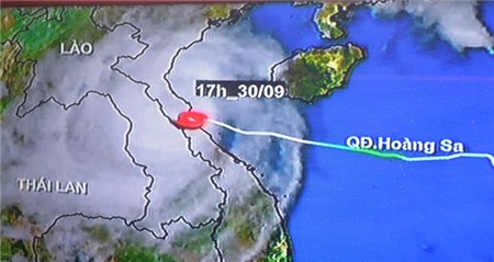 Cũng theo trung tâm dự báo khí tượng thủy văn, lúc 18h ngày 30/9, vị trí tâm bão ở vào khoảng 17,7 độ vĩ Bắc; 106,2 độ kinh Đông, trên địa phận các tỉnh Hà Tĩnh - Quảng Bình. Sức gió mạnh nhất ở vùng gần tâm bão mạnh cấp 10, cấp 11 (tức là từ 89 đến 117 km một giờ), giật cấp 12, cấp 13. Trong 12 giờ tới, bão di chuyển theo hướng giữa Tây và Tây Tây Bắc, mỗi giờ đi được khoảng 20km.