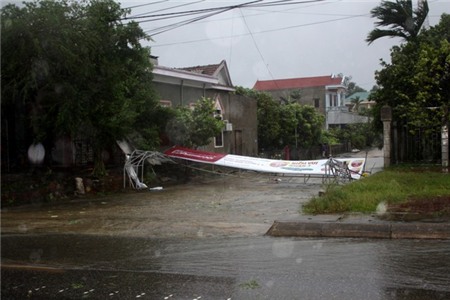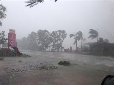 | Cơn bão lớn nhất trong nhiều năm trở lại đây ập vào miền trung kèm theo mưa rất to, gây ngập nhiều tuyến đường ở TP.Đồng Hới. Trước đó, toàn bộ hệ thống điện tại Quảng Bình, Quảng Trị đã bị cắt để đề phòng các sự cố. Ngoài trời gió rít mạnh từng cơn. Nhiều cây cối đổ sập xuống đường, nhiều nhà bị tốc mái, tôn may ngoài trời. |