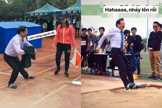 Chứng kiến màn nhảy xa của thầy hiệu trưởng, toàn trường có lẽ ai cũng cười nắc cười nẻ.
