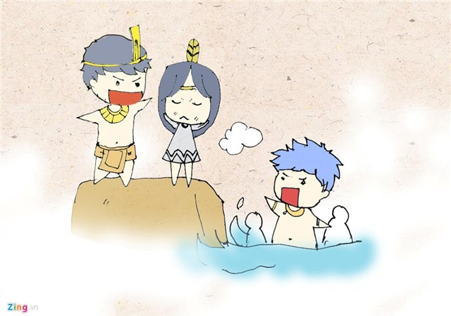 ngoạn qua đây, Chử Đồng Tử vội vùi mình xuống cát. Thuyền vào bờ, Tiên