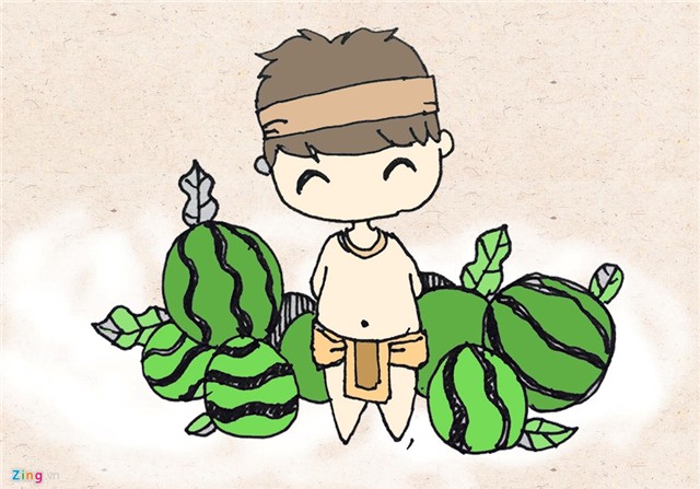 Tiêm vẫn lạc quan, ra sức lao động. Ông trồng được dưa hấu, gửi về đất