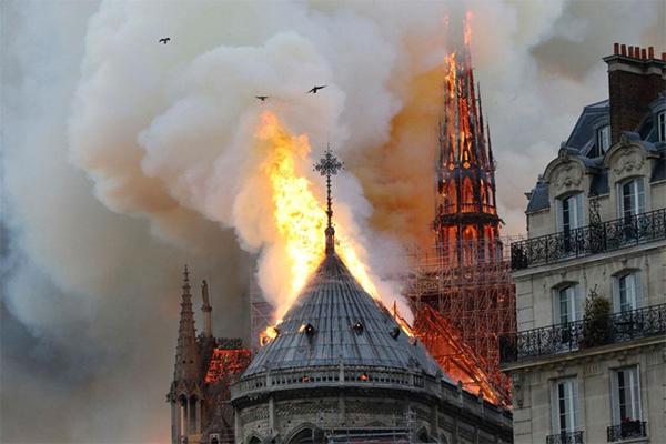 Nguyên nhân vụ cháy Nhà thờ Đức Bà ngày 15/4 có thể do chập điện. Ảnh: Getty.