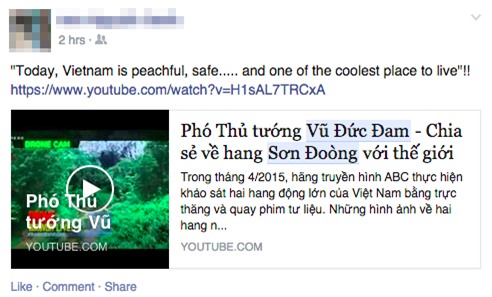 Ngày hôm qua, những thước phim ngoạn mục về vẻ đẹp hoành tráng của Sơn Đoòng đã chính thức được Good Morning America đưa đến hàng triệu người xem của mình trên thế giới. Chương trình này cũng đón một vị khách cực kỳ đặc biệt, đó là Phó thủ tướng Vũ Đức Đam.