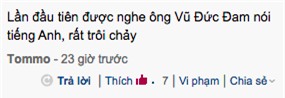 bác Đam lại nói tiếng Anh “chuẩn” thế.” hay “Lần đầu tiên được nghe một
